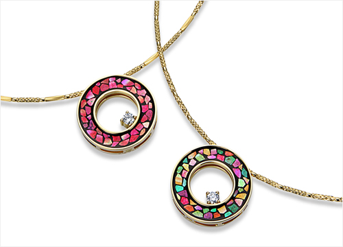K18YG Raden(Gold leaf/Colored foil)Diamond Pendant&Necklace