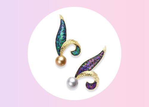 K18YG ピンクサファイア・グリーントルマリン 螺鈿・ダイアモンド